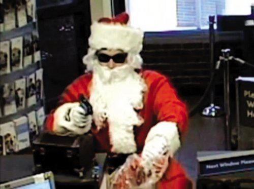 这是一张银行监控录像截图:去年12月22日,美国田纳西州纳什维尔的太阳信托银行迎来了一位持枪抢银行的“圣诞老人”。国外生活不是童话,留学要时刻保持警惕CFP供图